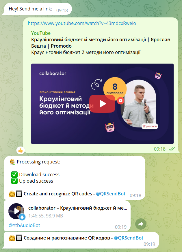 Мультиязычный переводчик, поддерживающий целых 30 языков! В их число входит и украинский (что, признаться, для ботов-переводчиков пока редкость). Очень достойно справляется даже со сложными текстами, включая художественные.